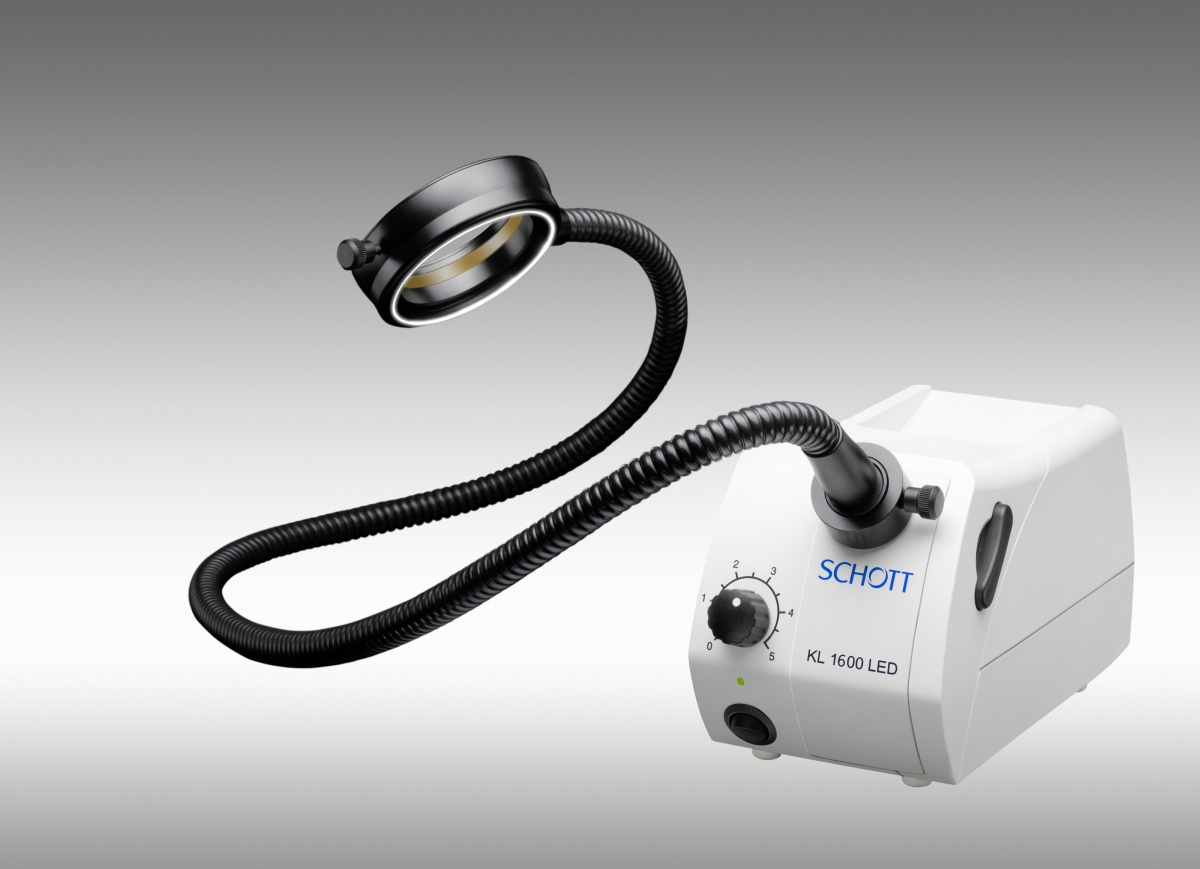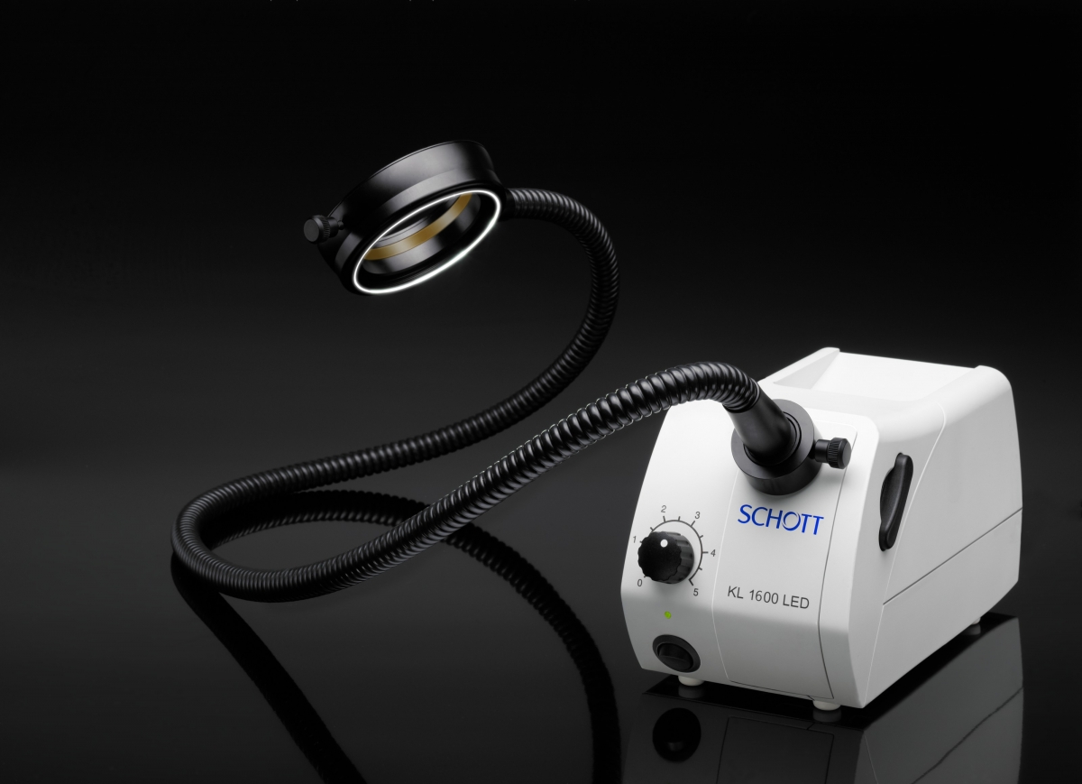 Faible encombrement permettant de placer la KL 1600 LED proche du statif du stéréomicroscope