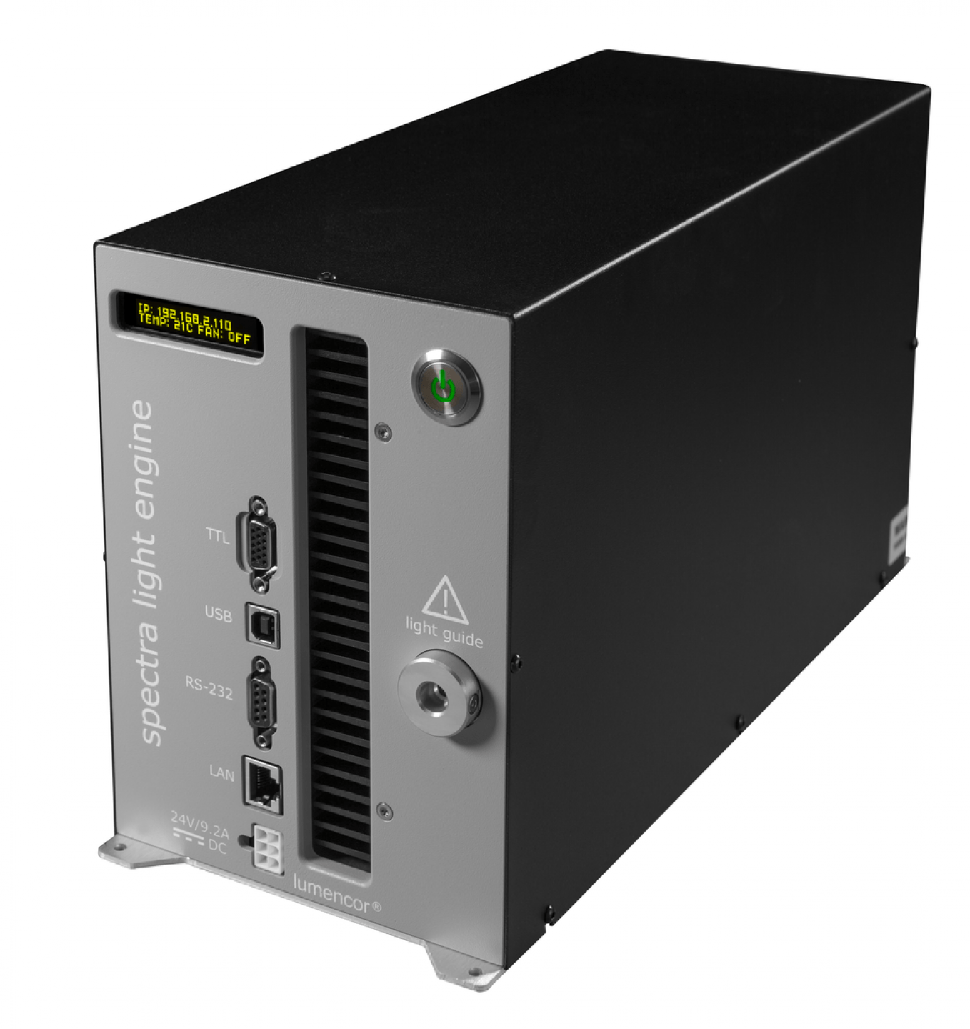 Le système d'éclairage lumencor SPECTRA III contient un assemblage de 8 sources de lumière brillante :