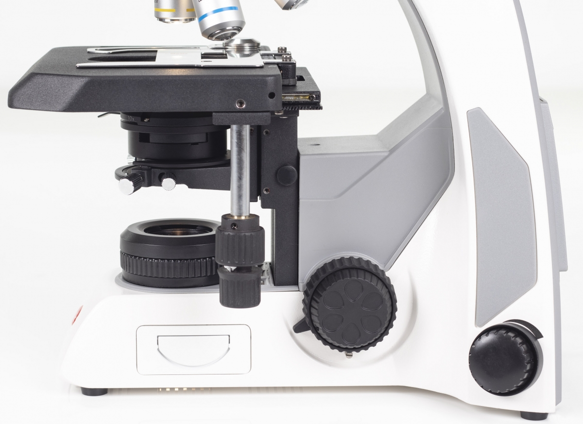 - Condenseur Abbe ( ouverture numérique 0.90/1.25 ) centrable et mise au point variable : rappel de l'ouverture numérique en fonction de l'objectif. Insert pour coulisseau de contraste de phase