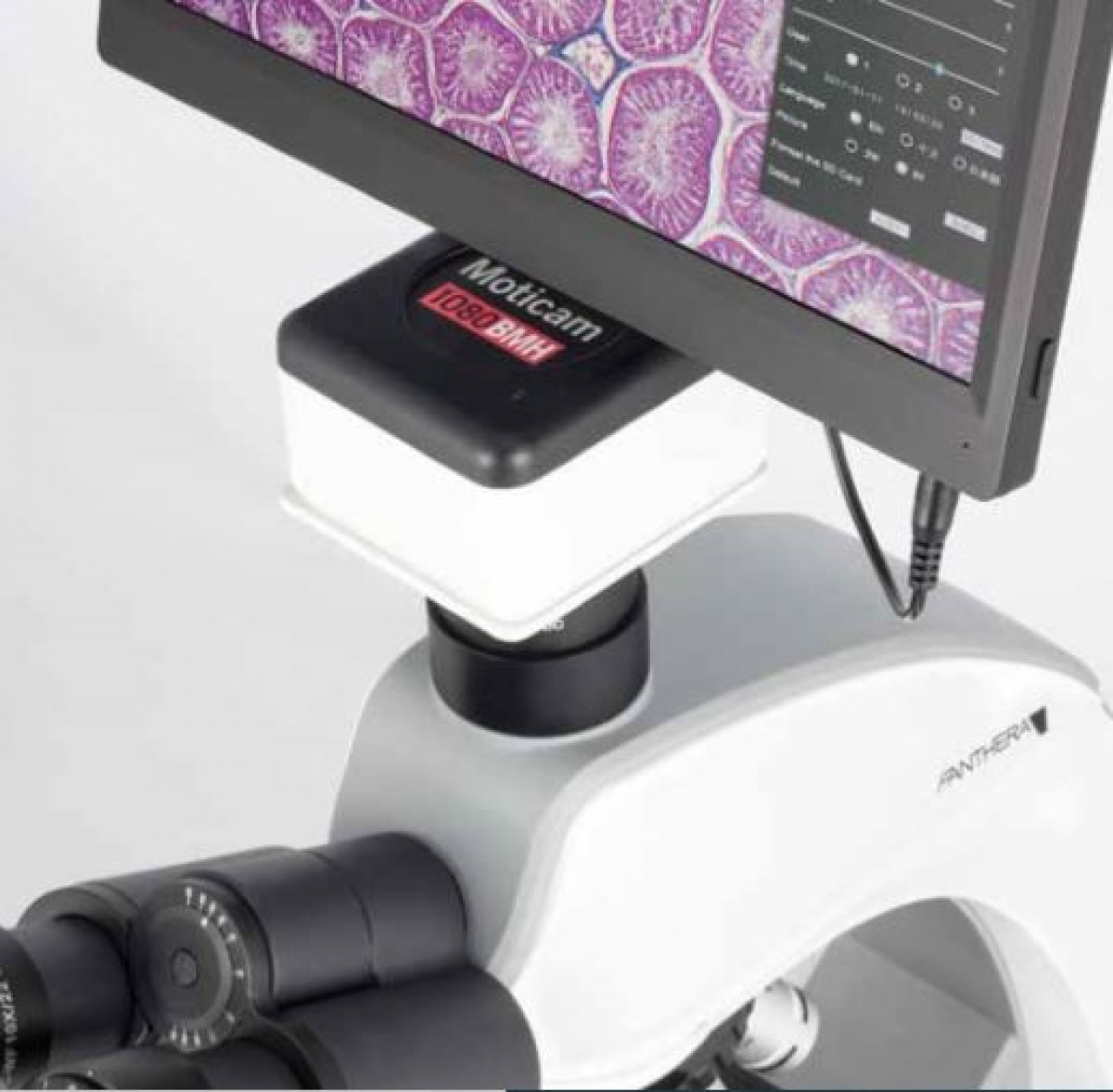 La Moticam 1080 BMH est une caméra de microscopie multitâche de type C-Mount, qui fournit une impressionnante image en direct en Full HD 1080p avec une fidélité maximale des couleurs sur un écran LCD intégré.