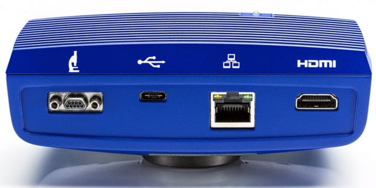 - La mise en route pour l’utilisateur est simplifiée : pas d’ordinateur, pas logiciel à paramétrer ou à autoriser sur votre poste par votre administrateur (informaticien). Et cela facilite le déplacement et le transport de la caméra d’un microscope à un autre ou d’un site de travail à un autre