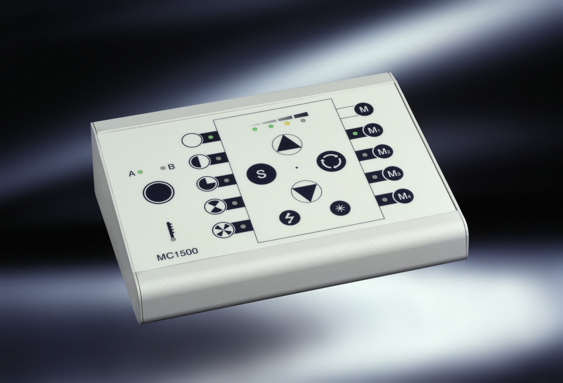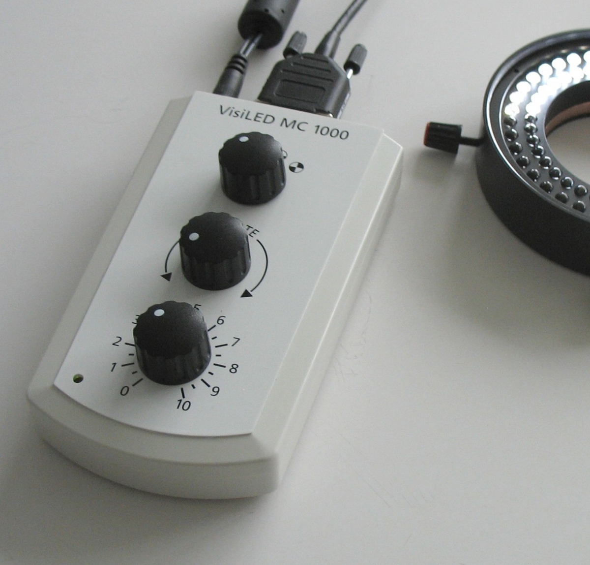 Boitier MC 750 : basique utilisé pour des besoins de contrastes plus faibles, offre un réglage de l'intensité lumineuse en continu et une protection de surchauffe de la tête d' éclairage à LED connectée